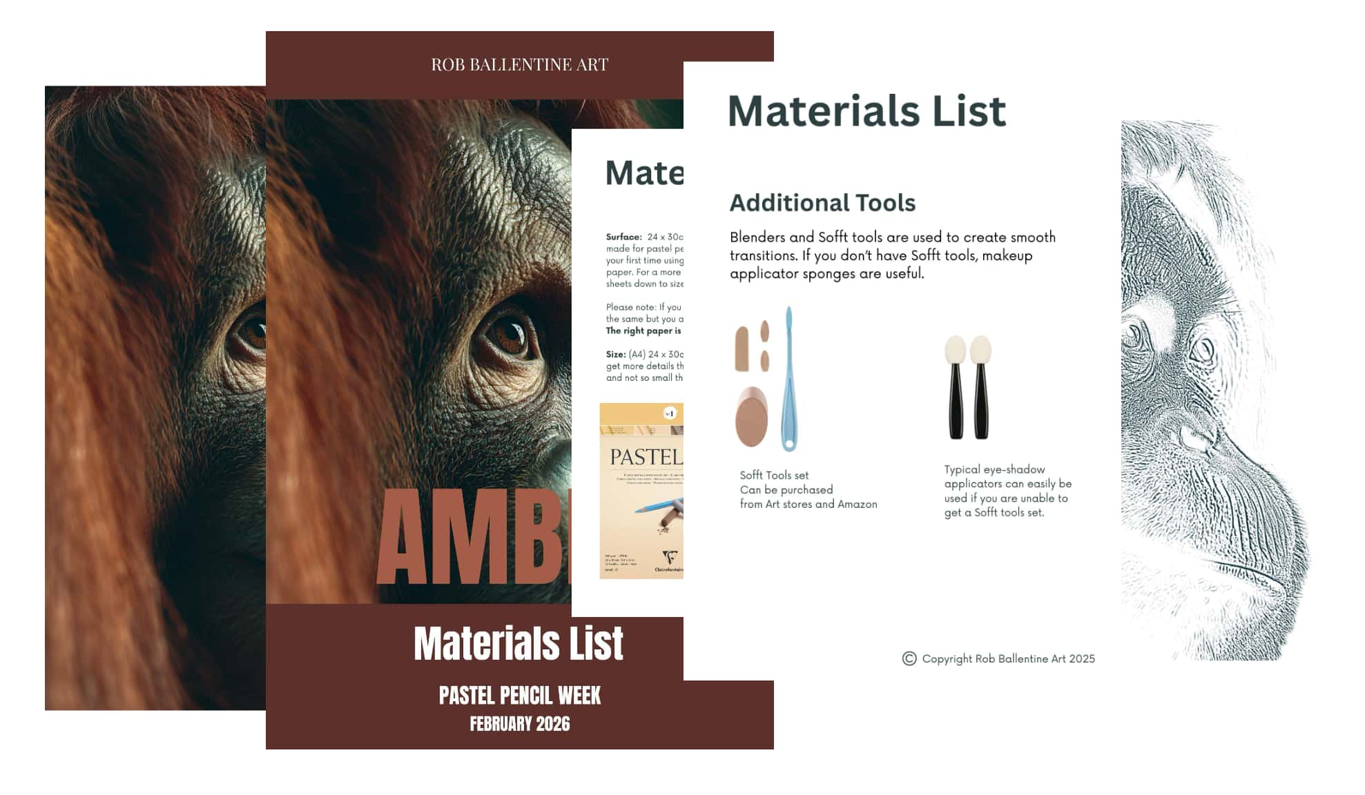 FREE! PDF Workbook including materials list, reference image and lineart